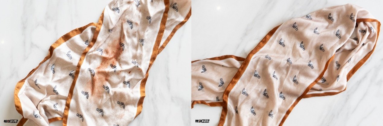 第1轮是将一块丝巾浸透咖啡渍,然后放入石头M1S Ultra,开启针对细巧面料的温雅洗涤花样。洗涤收尾后取出丝巾,不仅咖啡渍被透顶剖判去除,丝巾如故明后如新。