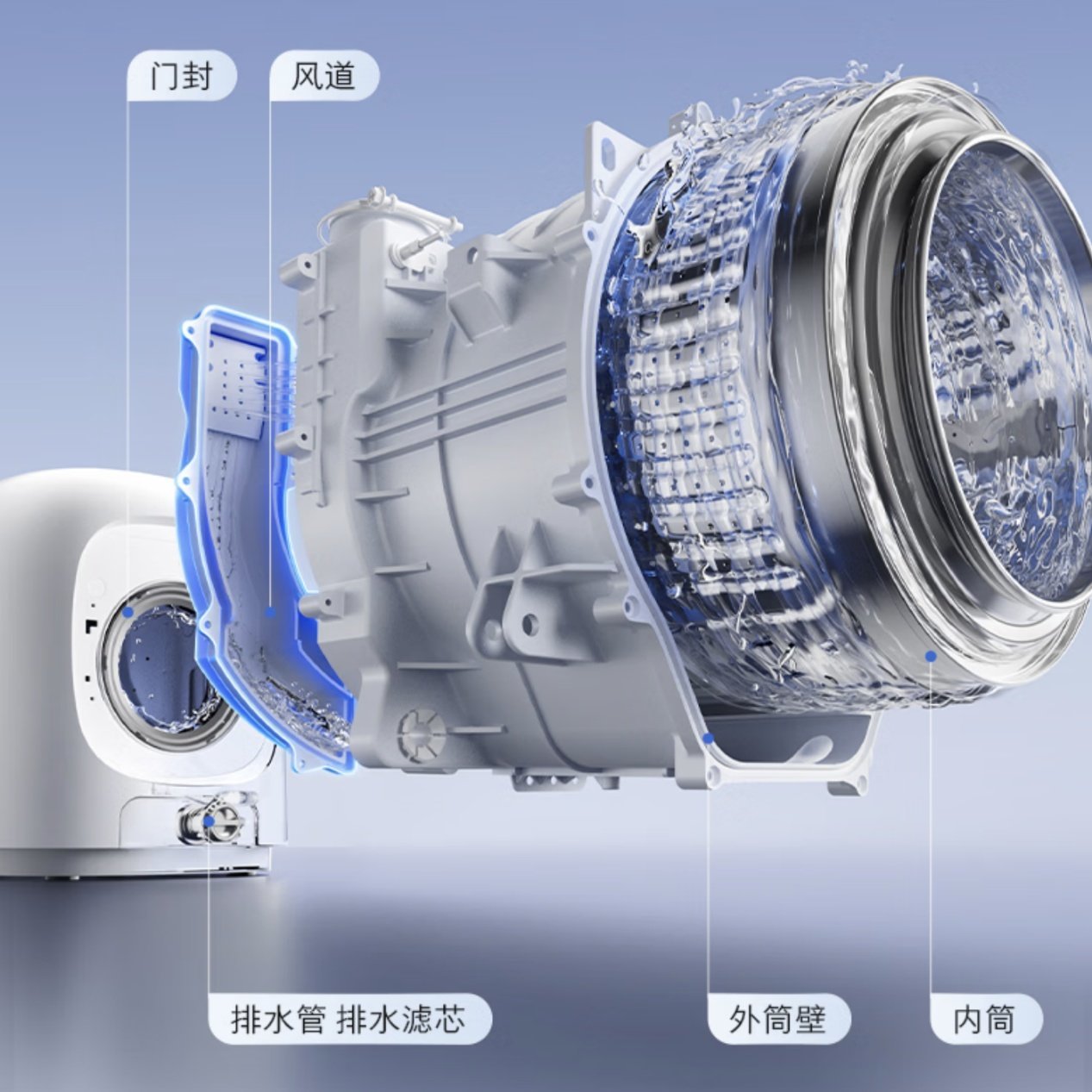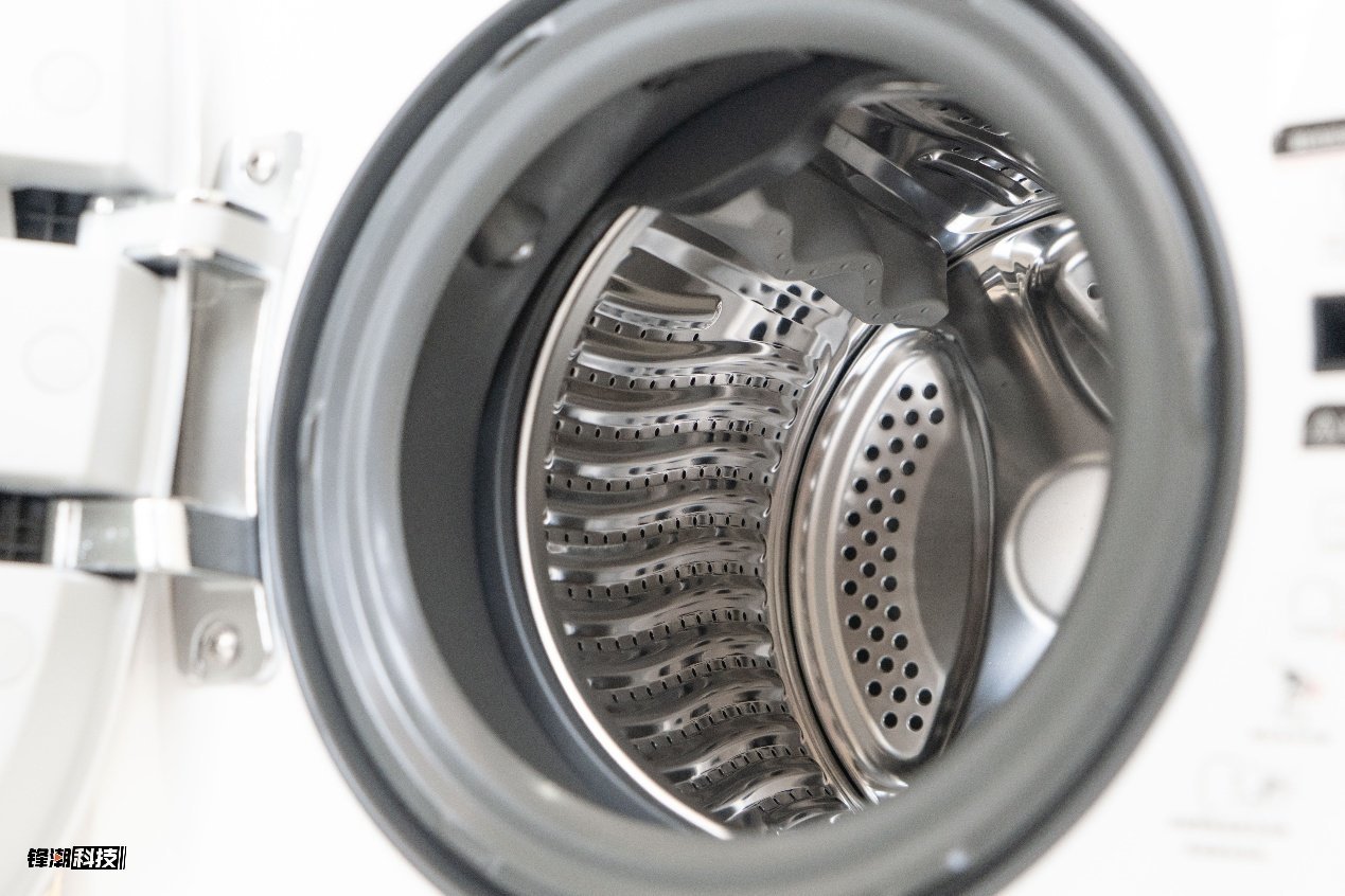 与超水解期间协同使命的,还有升级后的慕斯洗2.0。电解后的活性水经过喷淋口时,贯通过螺旋结构进行二次搀杂,再经由裁减预备的出口雾化喷出,形成如纳级慕斯般绵密的泡沫。产生的慕斯气泡,渗入力远超平庸洗涤,能深远纤维疏忽,像手搓般温雅而高效地带走污渍,洗净比达到1.1的一级能效表率,卵白布洗净比更是大于2.43。