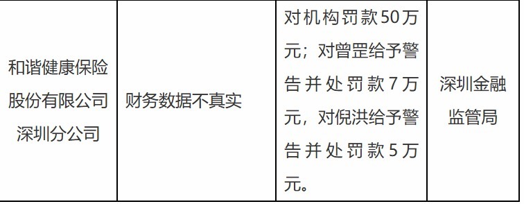 近日,国度金融监督惩办总局深圳监管局(以下简称“深圳金融监管局”)浮现了最新的行政处罚信息公示表,调解健康保障股份有限公司深圳分公司(以下简称“调解健康深圳分公司”)因财务数据不真确被监管部门处以罚金,同期联系遭殃东谈主亦受到警告和罚金处罚。
