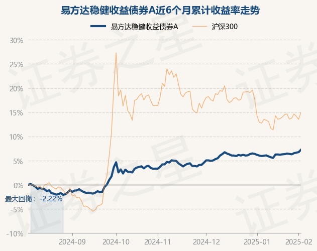 本站音讯,2月6日,易方达肃穆收益债券A最新单元净值为1.3899元,累计净值为2.5115元,较前一交游日高涨0.46%。历史数据知道该基金近1个月高涨1.2%,近3个月高涨2.87%,近6个月高涨7.22%,近1年高涨10.49%。该基金近6个月的累计收益率走势如下图: