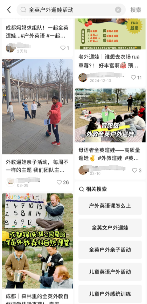 全英文遛娃步履常常由家长们自愿组织,他们聘用在公园、社区广场等豁达场合进行。步履经由中,家长们全程用英语与孩子交流,在家长们看来,这种体式为孩子们提供了丰富的语言实验契机,孩子们在与同龄伙伴的互动中,当然地利用英语抒发主义,极地面激励了他们对英语学习的有趣有趣和关注。
