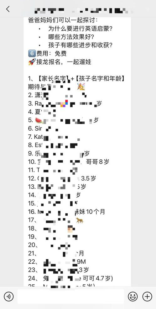 记者搜索发现群里小孩大多在6岁以内,最小的孩子仅10个月大。家长们深广合计,孩子越早插足到语言环境中,越能更快地掌执学习。巨匠对此指示,过早融入外语环境或致母语学习滞后。