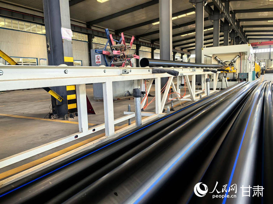 甘肃雨禾节水灌溉斥地有限公司坐蓐车间里,PE100供水管持续下线。东说念主民网记者 周婉婷摄