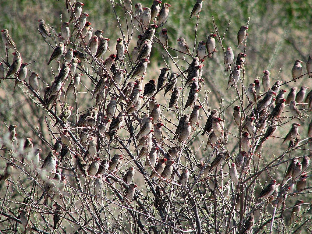 据统计,在一个繁衍周期内,纳米比亚一个领有500万只成鸟和500万只幼鸟的栖息地中,红嘴奎利亚雀悉数破费了简易13 吨虫豸和 1000 吨种子。