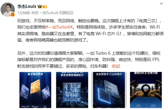 【CNMO科技音尘】1月4日开yun体育网,一加中国区总裁李杰官宣一加Turbo 6将搭载旗舰同款电竞三芯。此外,该机陀螺仪的调校假想也对都一加旗下的旗舰家具。新机将于1月8日19:00认真发布。